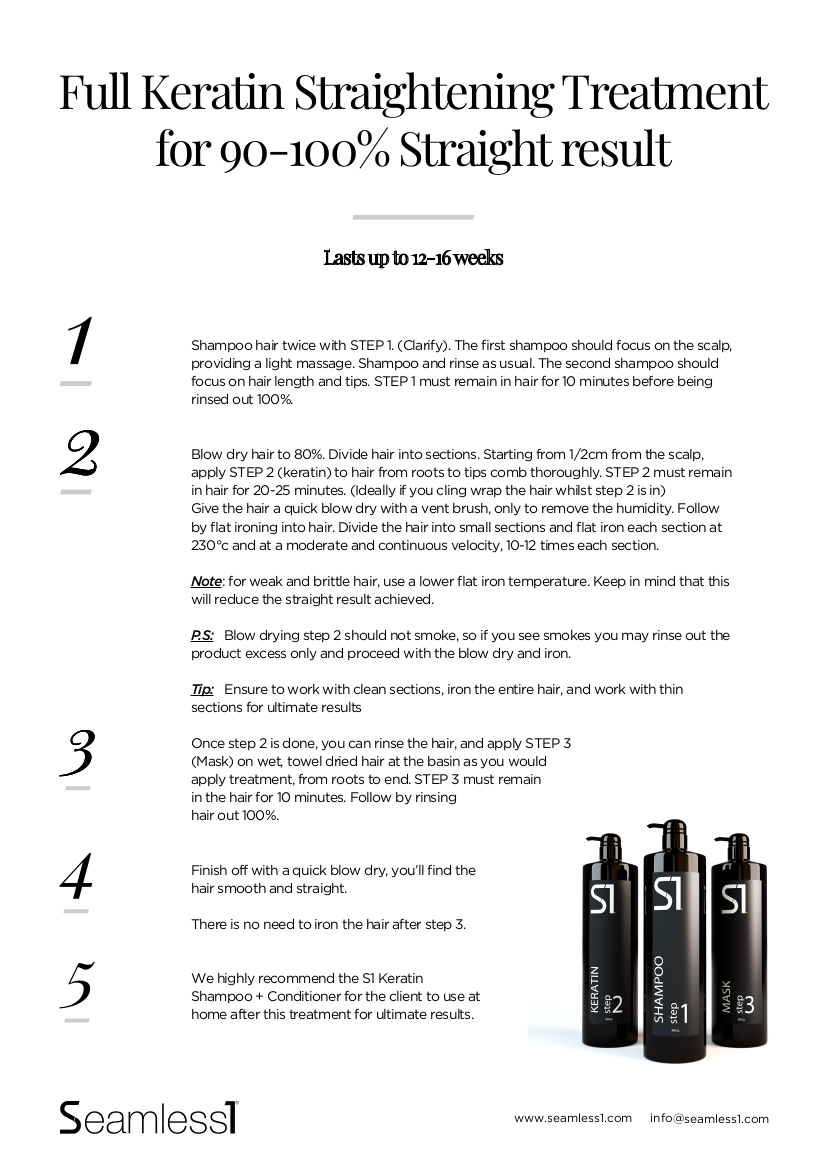 Theory Training – Marketing & Quoting How to Apply Seamless1 Client After Care Card Click here to download Hair Extension Waiver Form Click here to download After Care Service Form Click here to download How to Apply Keratin 70% Download How to Apply Keratin 90% – 100% Download How to Apply Peptame System Download Frequently Asked Questions Download S1 Intense Care Mask Download